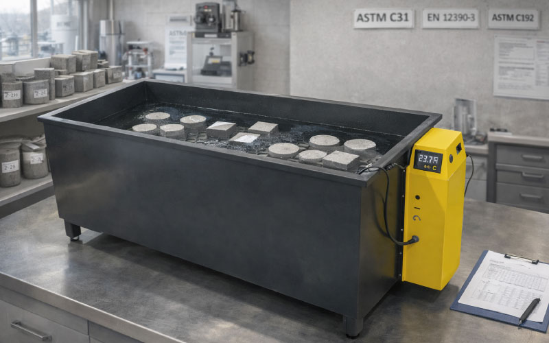 Desde el análisis de finos y detección de arcillas perjudiciales mediante el ensayo de Azul de Metileno, hasta la verificación estructural con prensas de compresión servo-controladas de hasta 3000 kN, nuestra línea está enfocada en resultados confiables, repetibles y trazables. Además, los sistemas de curado garantizan condiciones controladas de temperatura y humedad, fundamentales para obtener datos reales de desempeño mecánico.