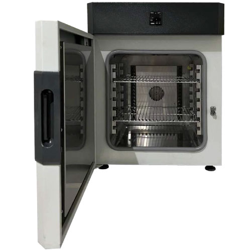 Estufa de convección diseñada para el secado eficiente de muestras y esterilización por calor seco, con tecnología de memoria ante cortes de energía para proteger sus procesos.